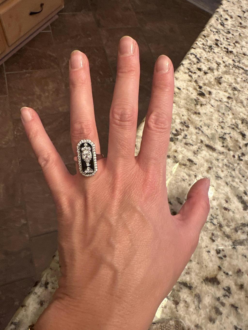 This ring is even more lovely in person! Absolutely one of my very favorite pieces of jewelry. Good size, well made, and unique.